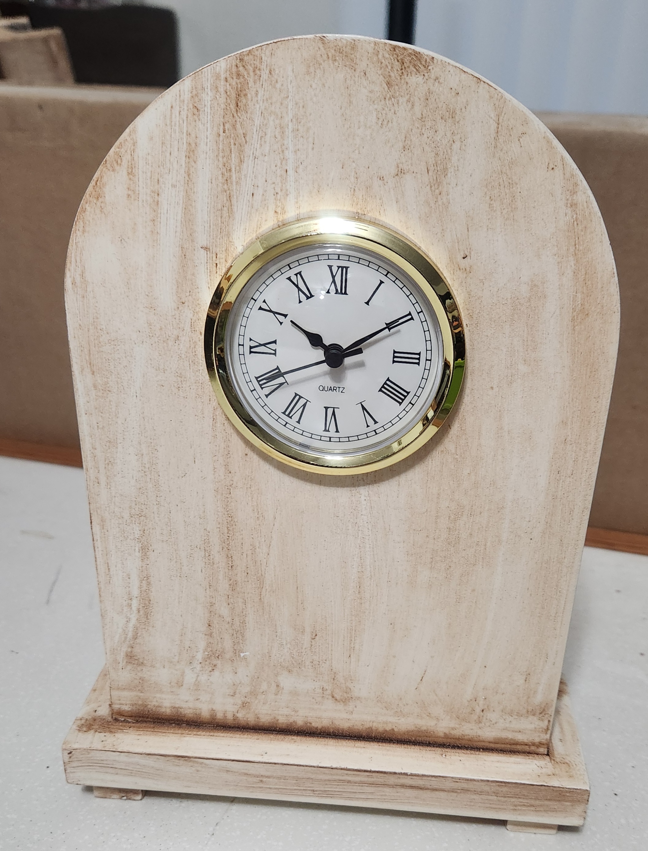 White with brown glaze mantle clock